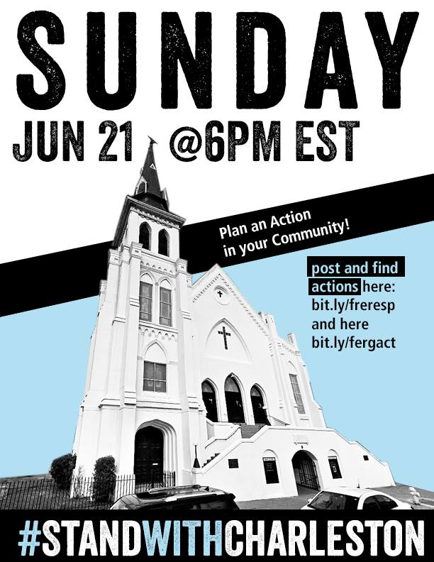 #StandWithCharleston Sunday, June 21, 2015 6:00pm 10:00pm 18:00 22:00 Plan an action in your community. Post and Find actions here: www.bitly.com/freresp and www.bitly.com/fergact