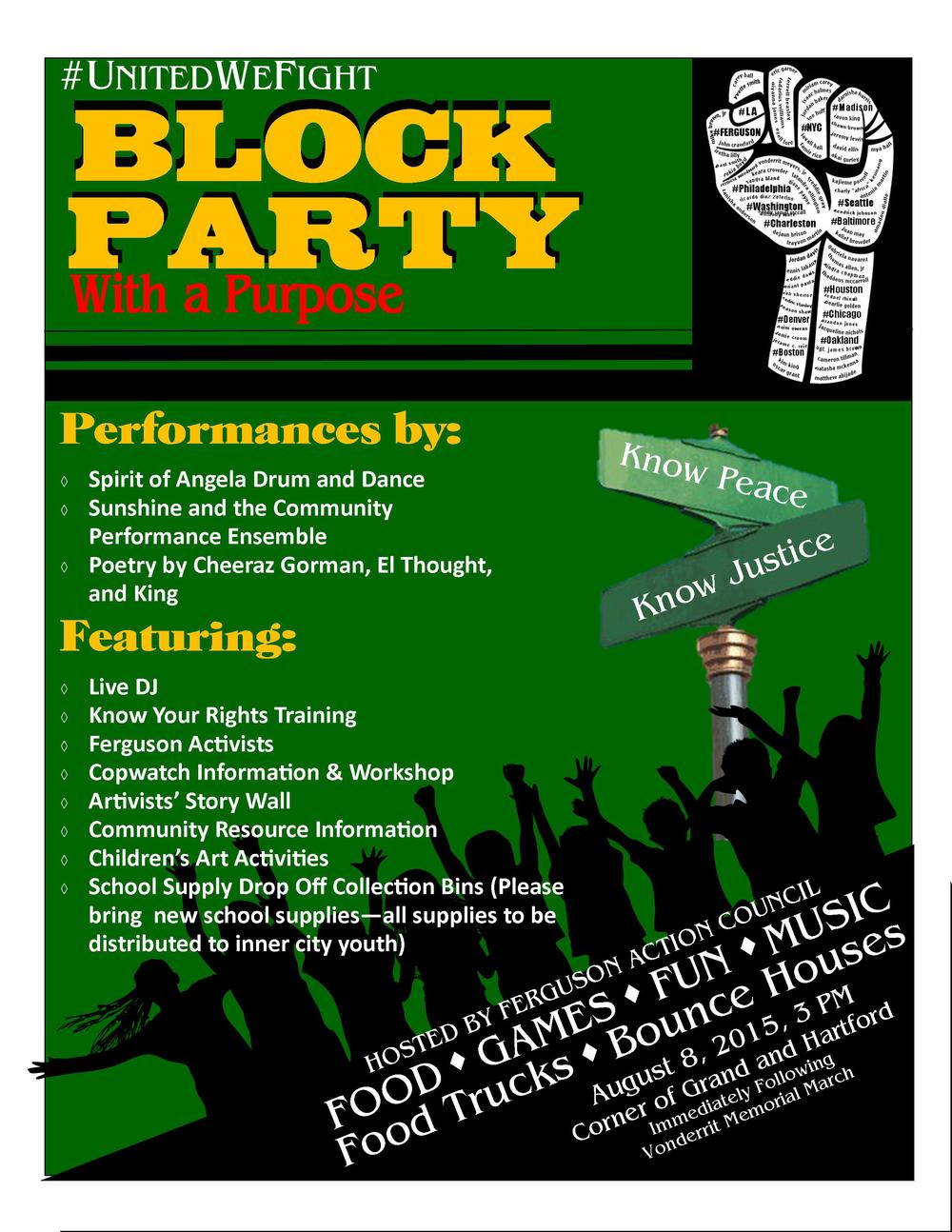2:00pm: March from Vonderrit Memorial to Block Party (March @ Shaw Blvd. & Klemm St., Block Party at corner of Grand Blvd. and Arsenal St.)
