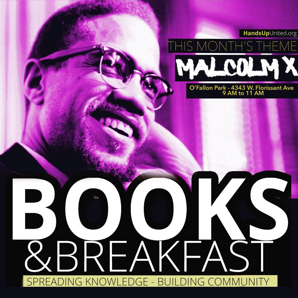 This month's theme for Hands Up United's Books and Breakfast event is centered around Malcolm X. We will have our event this month in an open area filled with lots of activities for the community and powerful readings. Remember this event is free to the community and everyone is welcomed to attend!
